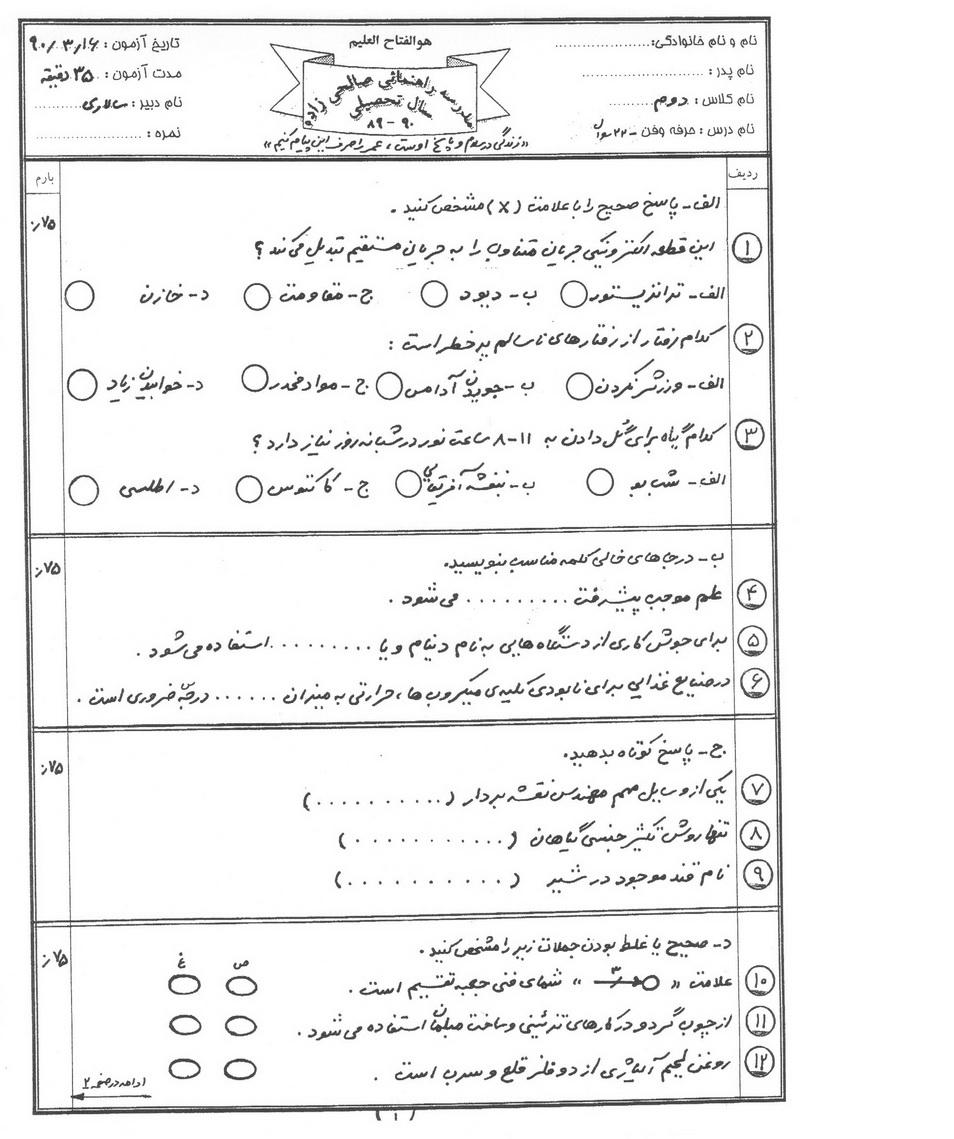 برچسبها: حرفه و فن, سوال حرفه و فن, نمونه سوال, راهنمایی صالحی زاده یزد